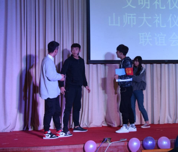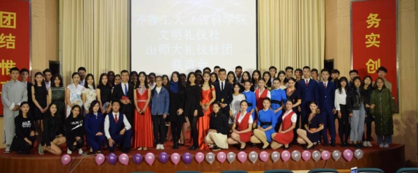 为增进齐鲁工业大学(山东省科学院)与山东师范大学两校礼仪社团交流学习,展示文明礼仪独特魅力与社团特色,倡导青年学子提升内在修养,加强和谐校园文明建设,11月11日齐鲁工业大学(山东省科学院)文明礼仪社和山东师范大学礼仪社联谊活动在齐鲁大讲堂举行?;ぱг和盼榧强追狈?、团委老师、17级新生两百余人参加了此次活动。