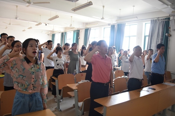会议伊始,许有强对全体党员进行了文明离校动员,他要求大家要牢记党员身份,加强文明修身,遵守校纪校规,当好老师与同学的桥梁,自觉维护宿舍安全,确保同学顺利离校。随后张安琪代表全体毕业生党员发言,她号召同学们要争做文明典范,在即将离校之际站好最后一班岗,给师弟师妹们留下宝贵的精神财富,以自己的实际行动,感谢组织的培养,回馈母校、学院、老师的教导。姜洪雷在讲话中希望大家能牢记入党誓词,自觉强化党员意识、合格意识、担当意识、传承意识,在今后的工作、学习岗位上积极进取,慎独共勉。最后,窦贝贝同学带领大家重温了入党誓词。
