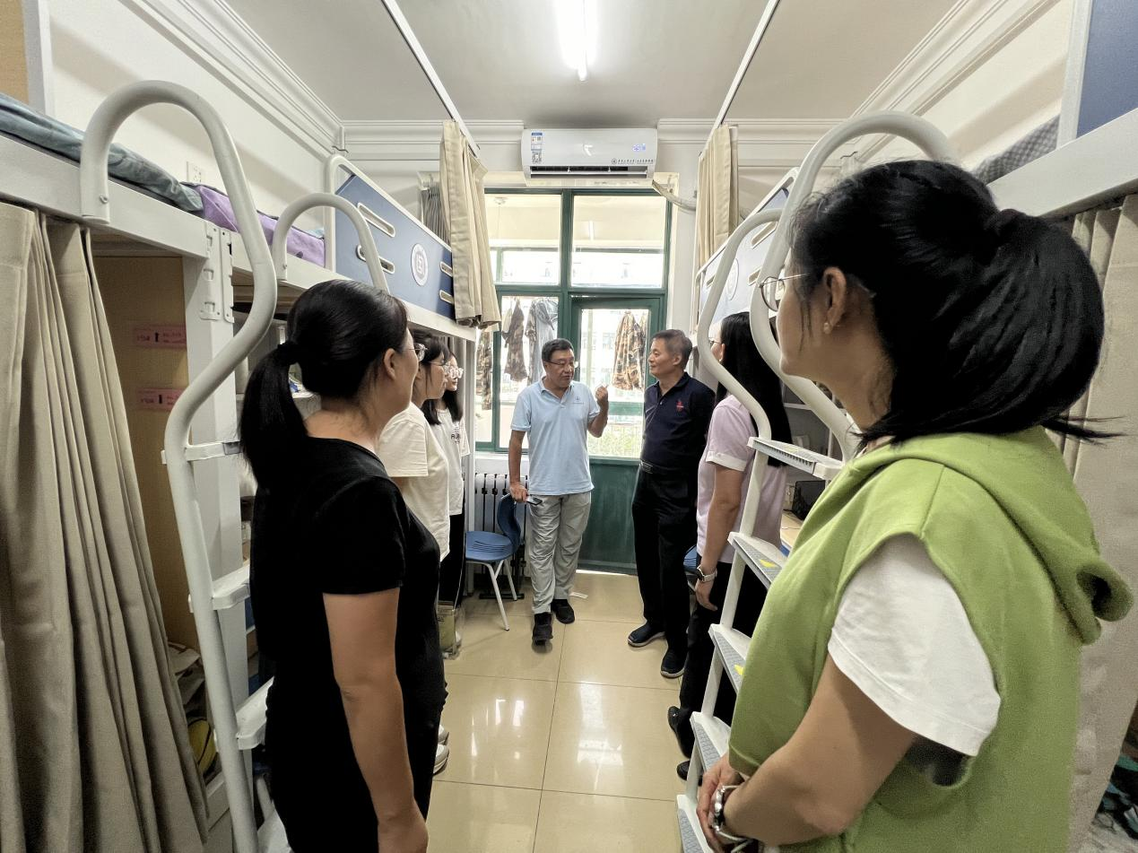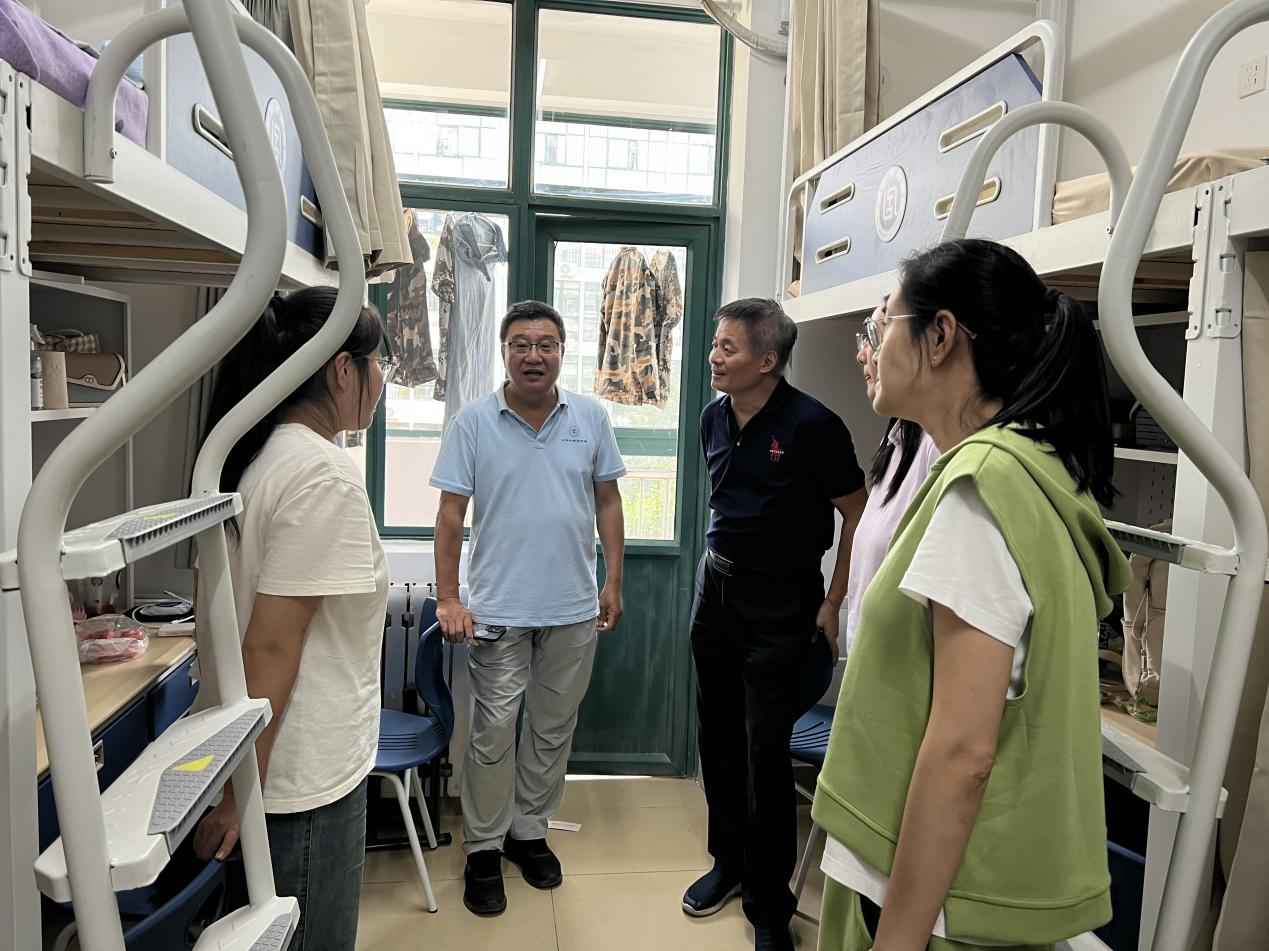 在宿舍内,学部领导与老师们逐一查看床铺、桌椅、水电等设施的使用状况,针对宿舍安全与日常管理提出具体要求:一是要绷紧安全弦,严格遵守学校用电、消防等安全规定,杜绝违规电器使用;二是要养成良好习惯,做好个人与公共区域卫生清洁,共同维护整洁舒适的居住环境;三是要学会和谐相处,在集体生活中包容互助,打造团结友爱的宿舍氛围。老师们强调,学部始终是新生最坚实的后盾,无论遇到学业难题还是生活困境,都可及时反馈给辅导员和班主任老师,学部将第一时间提供帮助与支持。