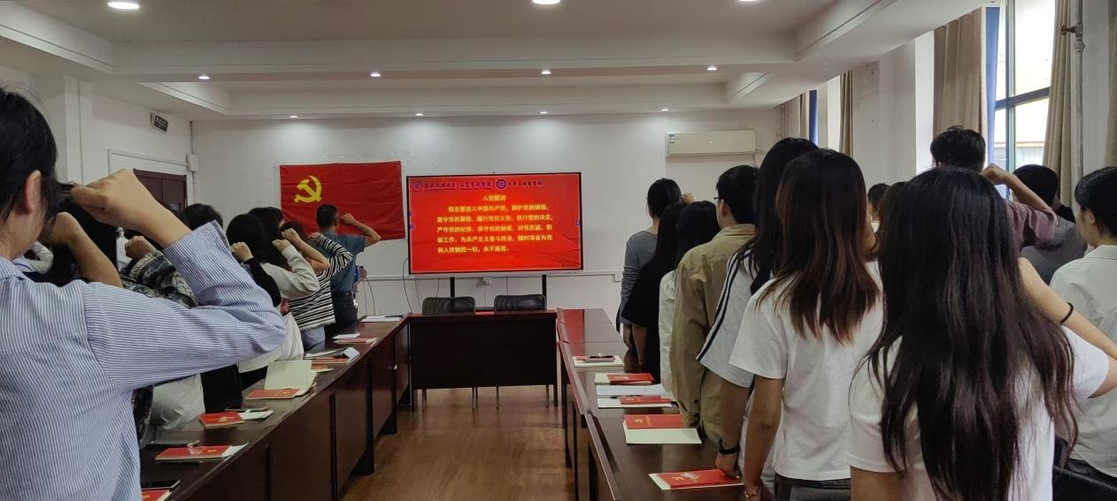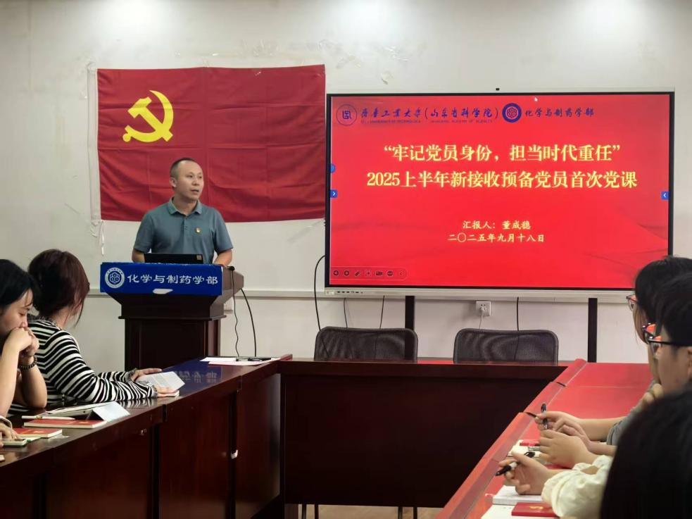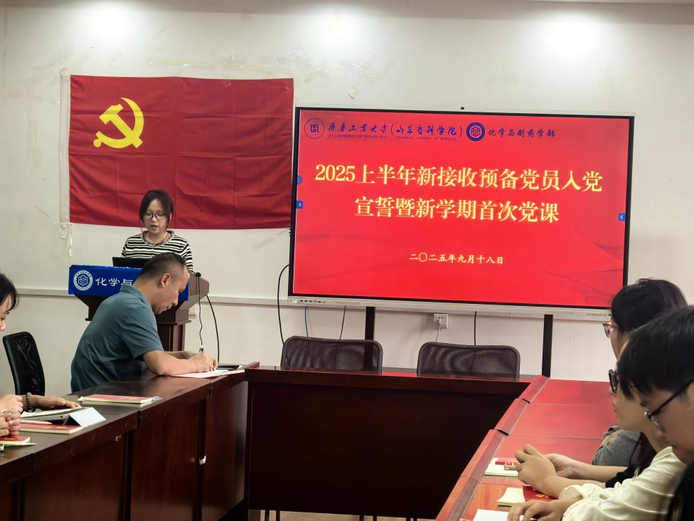 近日,化学与制药学部在食工楼C303会议室举行预备党员入党宣誓仪式暨新党员第一次党课培训。学部党委副书记董成稳、辅导员王梦瑶及41名新接收预备党员参加会议,组织员郭梦玉主持。