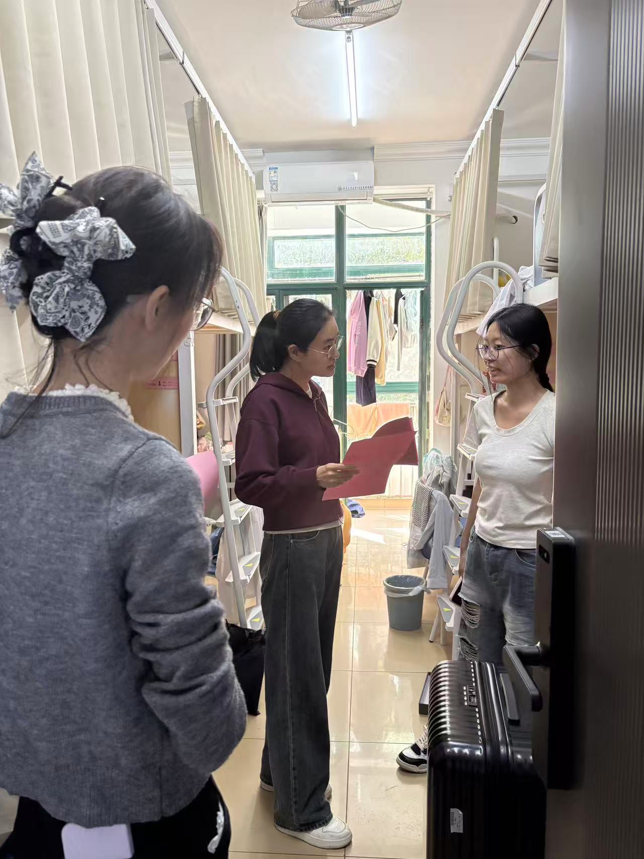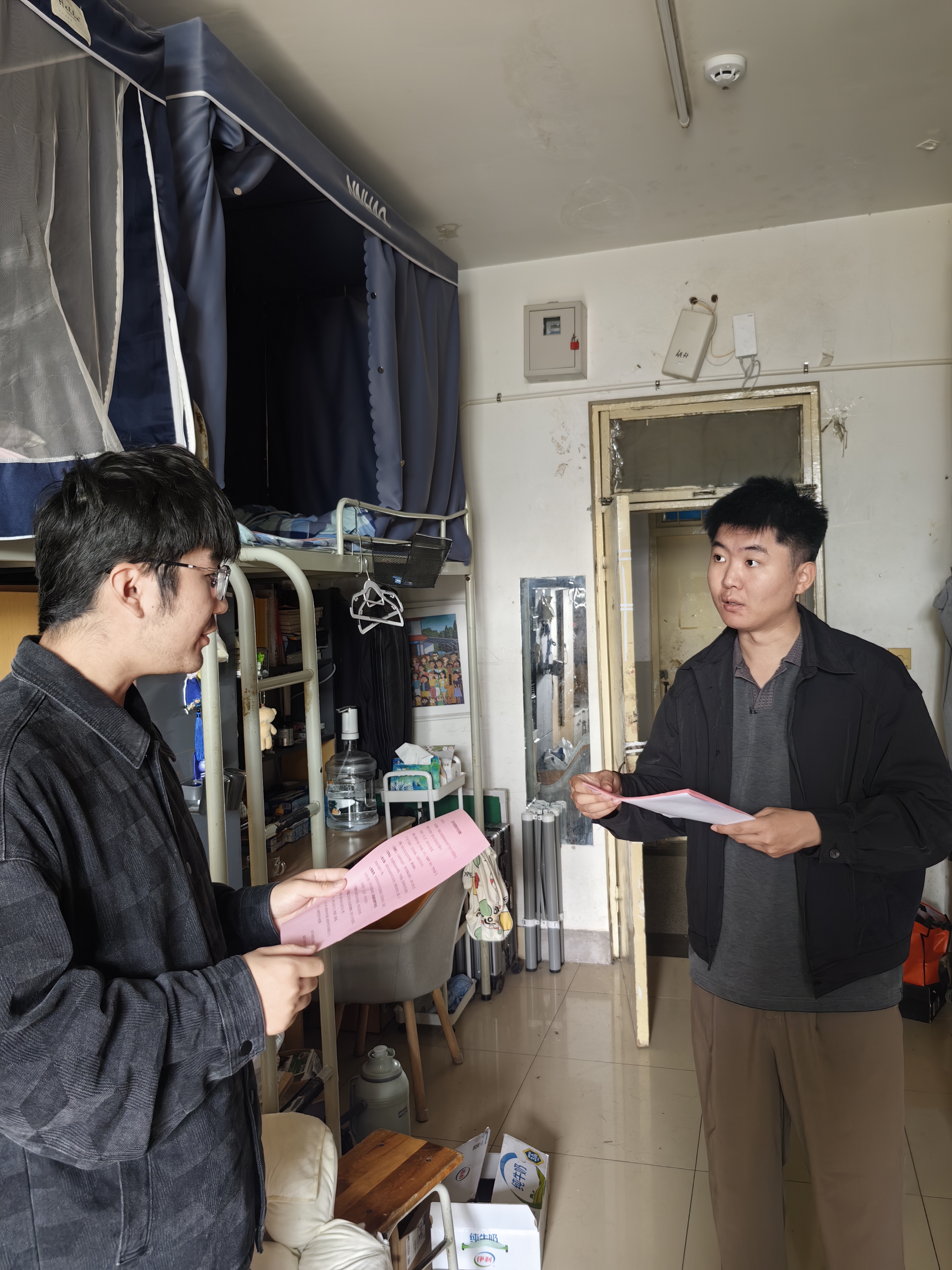 检查过程中,辅导员向各宿舍发放了《国庆中秋假期宿舍安全提醒》,现场开展安全教育,提醒同学们离宿前务必切断电源、锁好门窗,妥善保管个人物品,牢固树立安全意识,做到防患于未然。